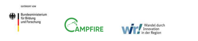 Über allem steht eine kohlenstofffreie, sichere Energieversorgung. Langfristig entstehen effektive wirtschaftliche Wege zur Verminderung des globalen Kohlendioxidgehaltes in der Erdatmosphäre. „Wir sorgen jetzt in Phase Nr. 2 von „WIR!“ mit der Schaffung einer „Open Innovation Plattform“ für eine Verstetigung der industriellen und wissenschaftlichen Schwerpunktsetzung von „CAMPFIRE“. Unser Ziel ist dabei die Gründung der CAMPFIRE gAG“, so Angela Kruth.