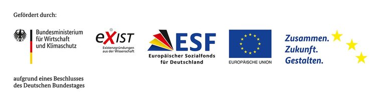 Das Vorhaben wird gefördert im Rahmen des EXIST-Programms durch das Bundesministerium für Wirtschaft und Klimaschutz und den Europäischen Sozialfonds unter dem Förderkennzeichen 03EFVMV031.